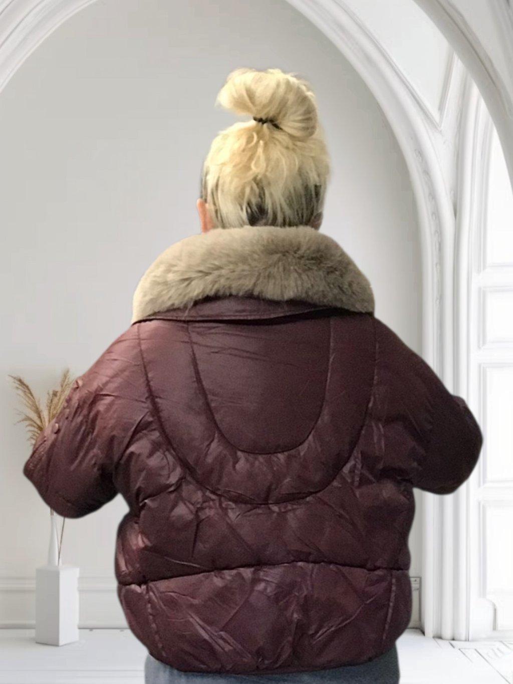 Hledáte jednu bundu, která zvládne elegantní i ležérní outfit? Dámská zimní bunda Laura v krásném bordó odstínu je přesně ta volba, která vás zahřeje a zároveň zvýrazní váš styl. Její hlavní předností je odnímatelný kožešinový límec v béžovém tónu – připnutý dodá bundě luxusní vzhled, bez něj získáte sportovnější a uvolněnější look.