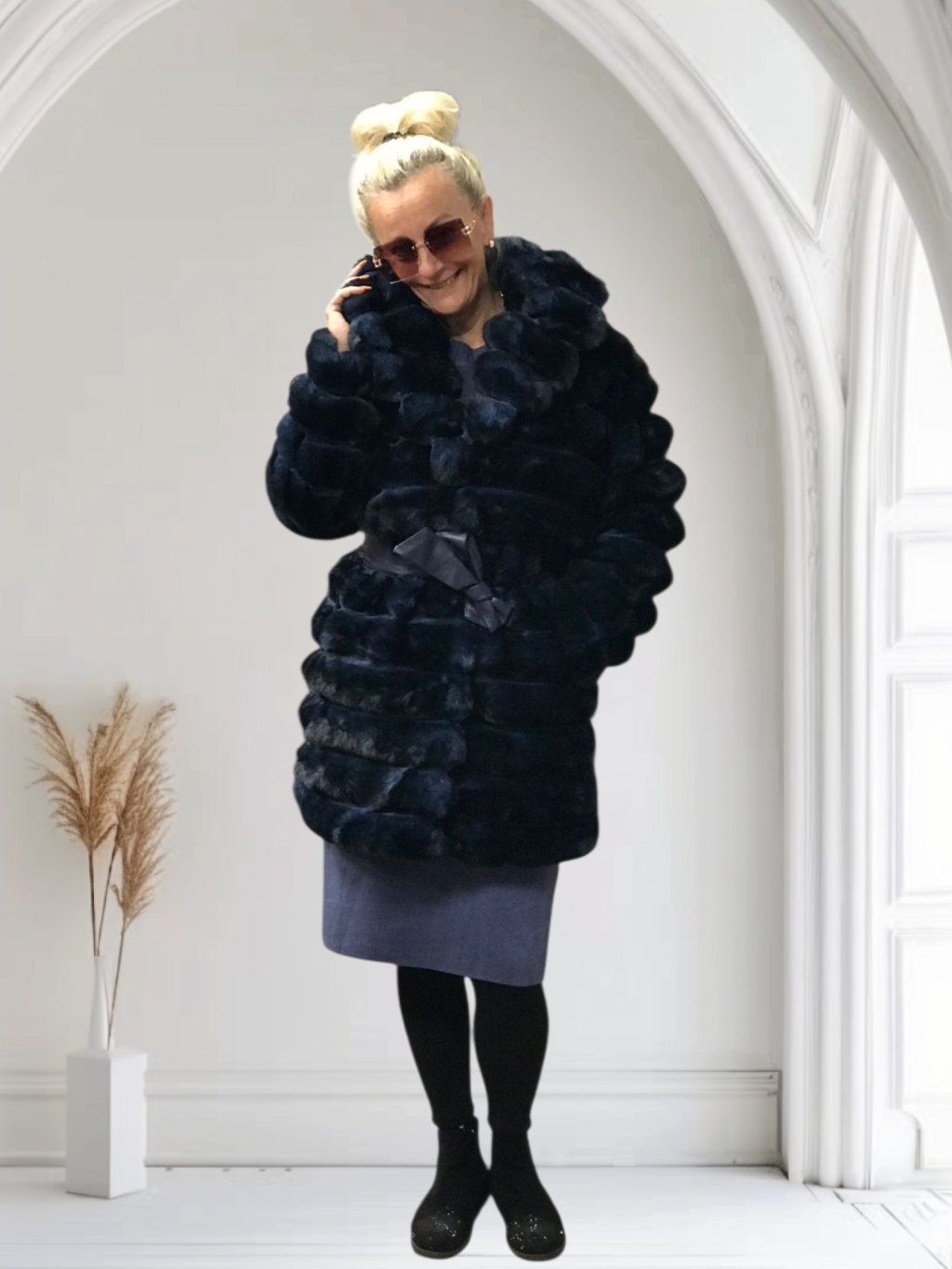 Jeho krátká délka (nad kolena) zajišťuje všestranné využití – hodí se jak k šatům, tak i ke kalhotám nebo sukni. Kabátek působí luxusně, ale zároveň se nosí s lehkostí. Dostupný ve dvou elegantních odstínech – béžové a tmavě modré, které se snadno kombinují s jakoukoli barvou obuvi i doplňků.