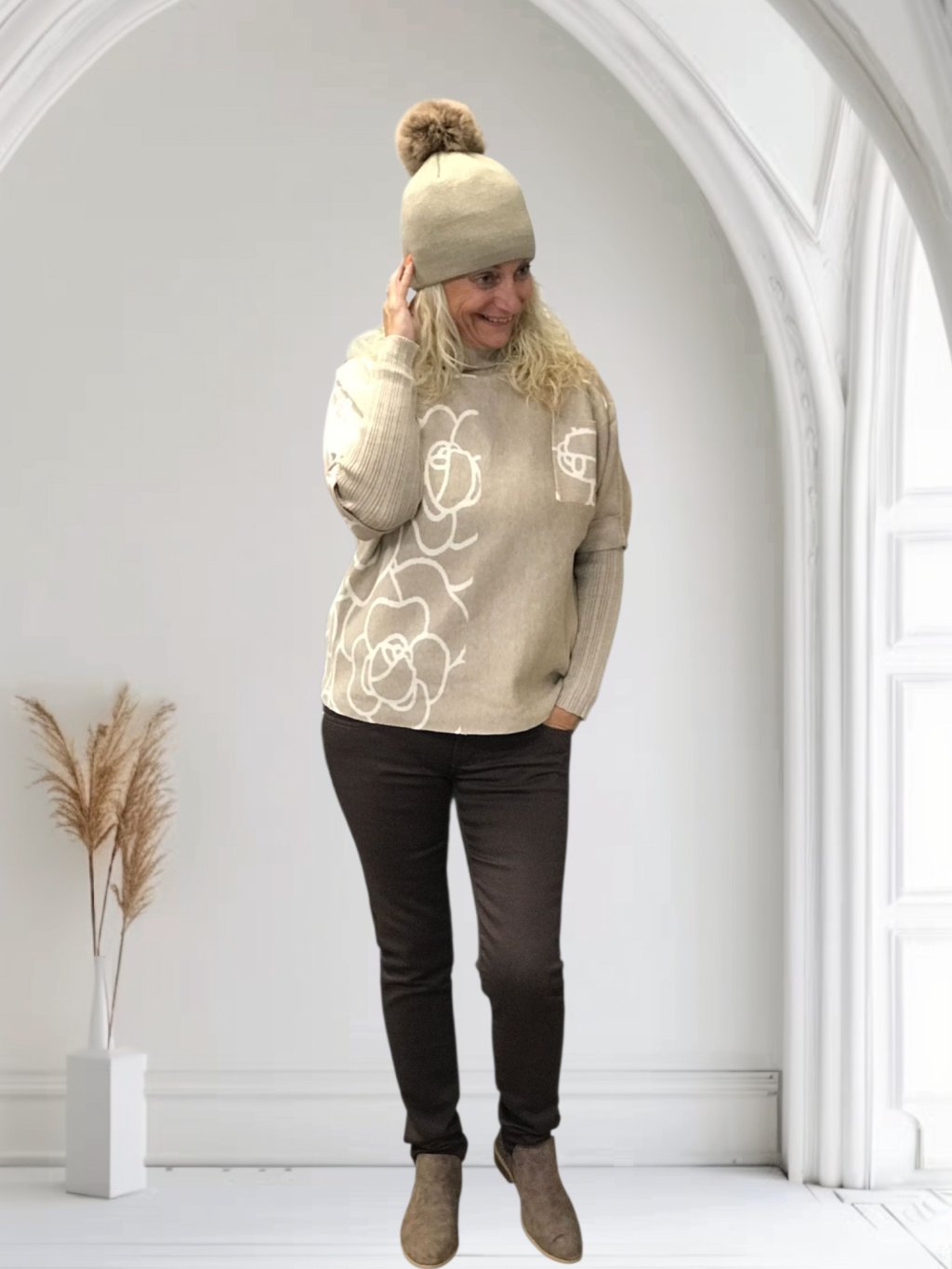 Detaily: Svetr má vyšší límec a dlouhé pletené rukávy, které vás udrží v teple.