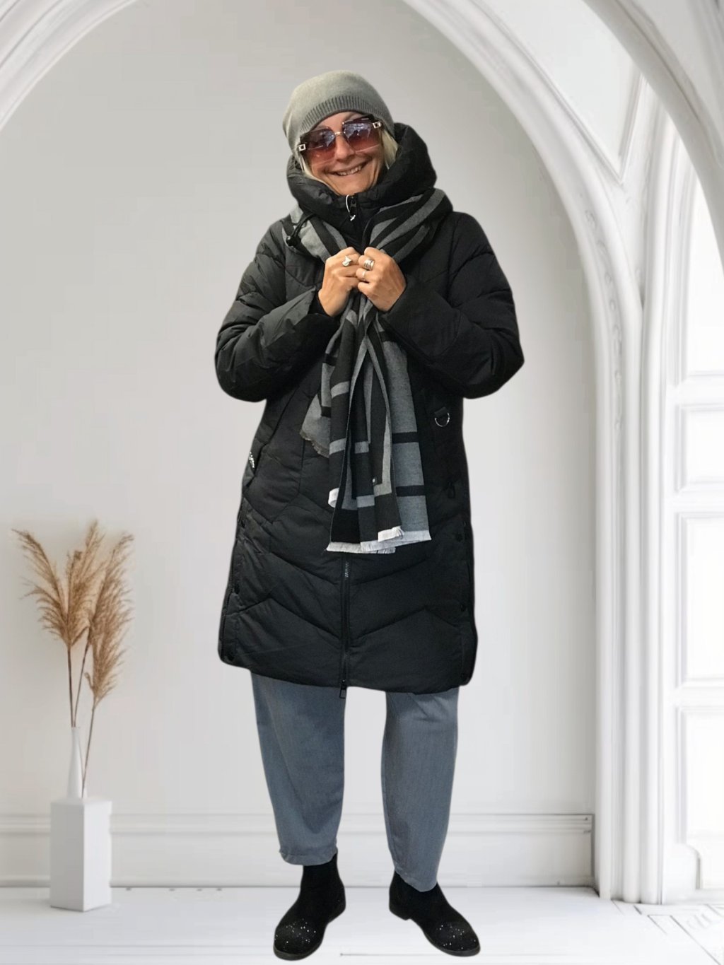 Připravte se na zimu ve velkém stylu! Dámský zimní kabát Verona kombinuje eleganci, funkčnost a pohodlí v jednom modelu. Tento dlouhý prošívaný kabát v klasické černé barvě vás spolehlivě zahřeje i v těch nejchladnějších dnech.