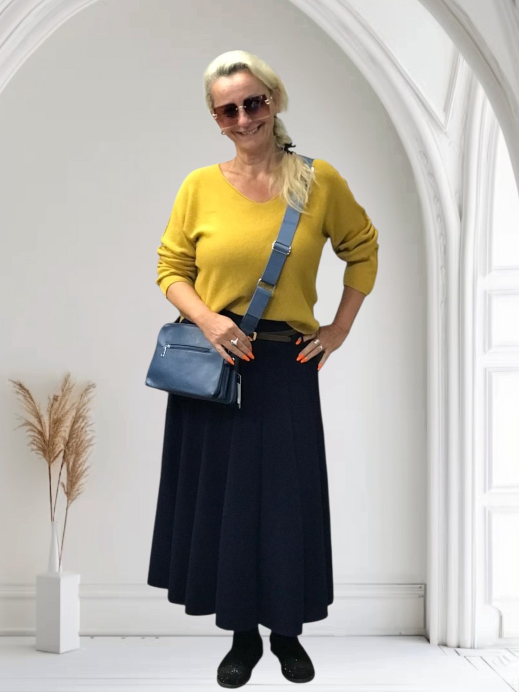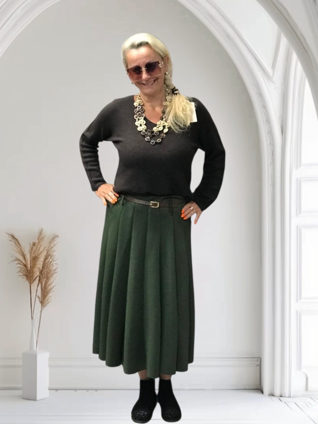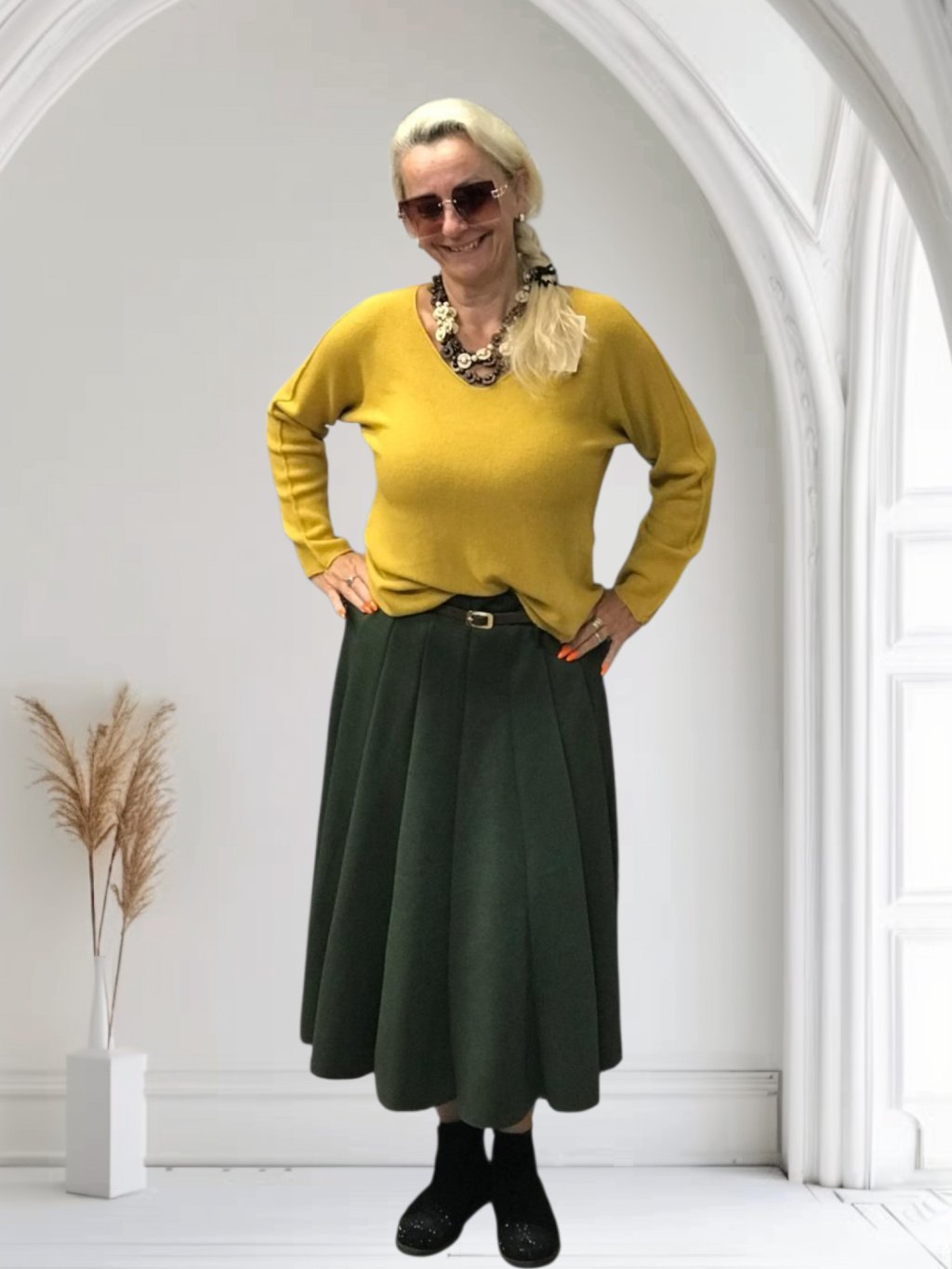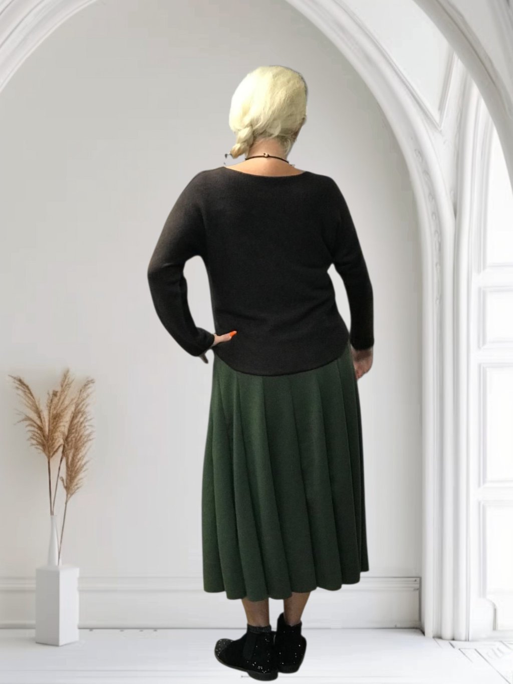 Midi skládaná sukně s volným střihem – elegance pro podzim i zimu